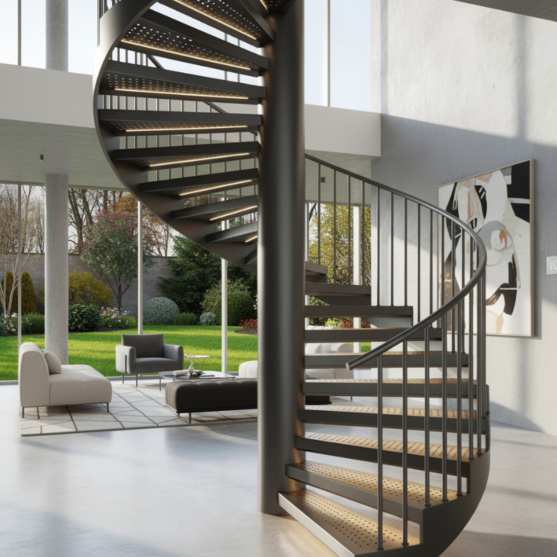 Konstrukce vřetenového schodiště je navržena tak, aby byla bezpečná a stabilní, přitom kompaktní: